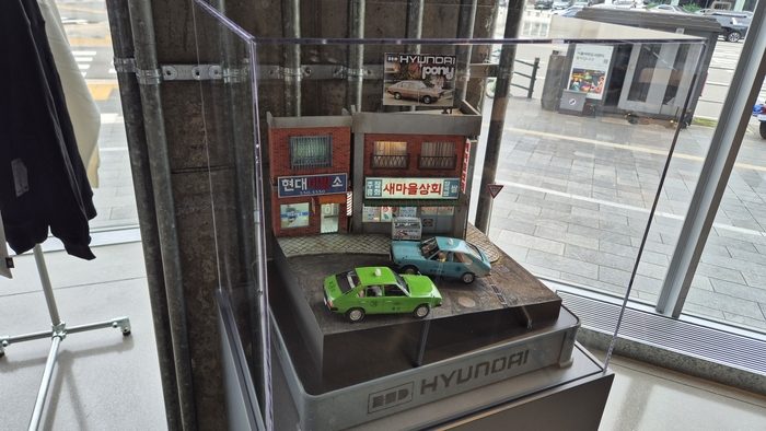 현대 모터스튜디오 서울 1층에 전시된 포니 출시 당시 모습을 재현한 디오라마 [한창호 기자] 2014년 개관한 현대 모터스튜디오 서울은 차량 판매 전시장에서 나아가 현대차 브랜드 방향성이 반영된 모빌리티 관련 전시와 문화·예술 콘텐츠,시승 프로그램 등으로 현대차가 고객과 직접 소통하며 자동차와 관련한 직관적인 경험을 할 수 있는 공간이었다.