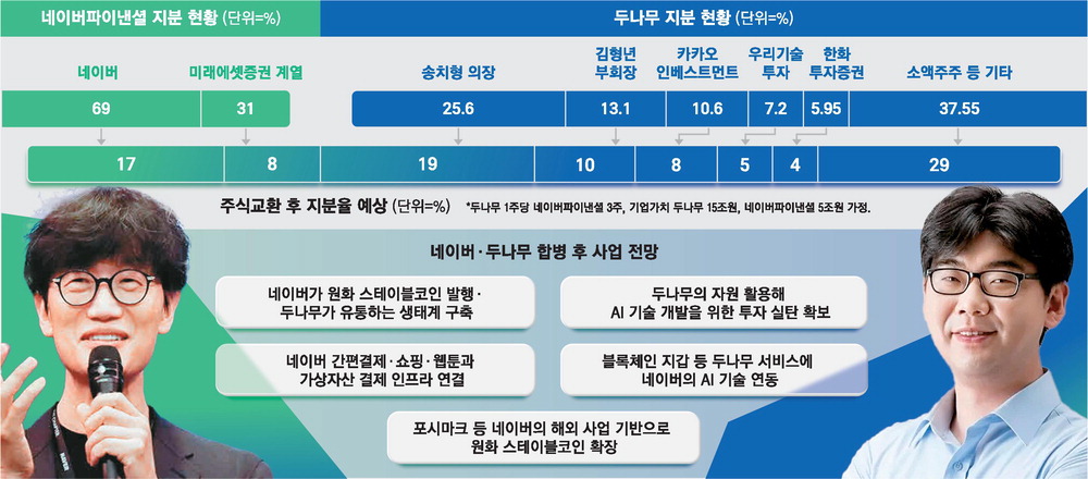 "네이버는 글로벌 금융 통합 플랫폼을 얻고,두나무는 염원했던 제도권 금융 진출을 이루게 됐다."