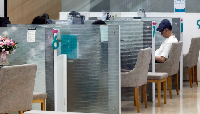 서울 시내 한 은행 대출 창구 모습. [김호영 기자] 이는 대출규제 강화 기조 속 ‘포모(FOMO·소외공포)’성 대출 수요가 늘자 은행이 변별력을 위해 대출벽을 높인데 더해,‘신용점수 인플레이션’(신용점수가 전반적으로 높아지면서 점수의 변별력이 약해지는 현상)이 맞물린 영향으로 풀이된다.