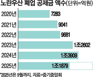 10일 중소기업중앙회에 따르면 올해 폐업 공제금은 9월 기준 1조1879억원으로 현재 추이대로라면 사상 최대 규모를 기록할 것으로 보인다. 폐업 공제금은 2023년 1조2602억원으로 처음으로 1조원을 넘어선 데 이어 지난해 1조3909억원을 기록했다. 올 4분기 집계까지 포함될 경우 올해 폐업 공제금은 지난해 수준을 훌쩍 넘어설 것으로 예상된다. 노란우산은 퇴직금이 없는 소기업·소상공인에게 최후의 보루로 여겨진다. 따라서 자영업자들이 폐업에 따른 공제금을 지급받았다는 것은 그만큼 한계 상황에 내몰렸다는 것을 의미한다.