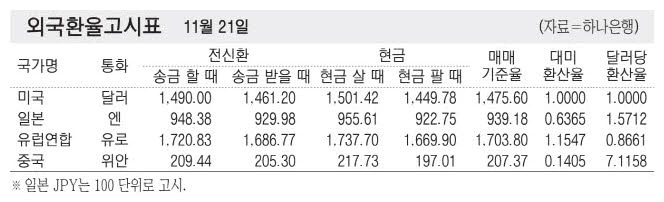 [표] 외국환율고시표
