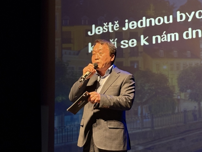 환영사 중인 박봉주 성동문화재단 이사장/사진=김지은 여행+ 기자 박봉주 이사장은 “성동문화재단은 영화라는 매개체를 통해 세계와 소통하는 기회를 지속적으로 만들어가고 있다”며 “이번 체코 영화 주간행사을 통해 관객들이 체코의 낭만과 예술적 깊이를 발견하는 시간이 되길 바란다”고 말했다.