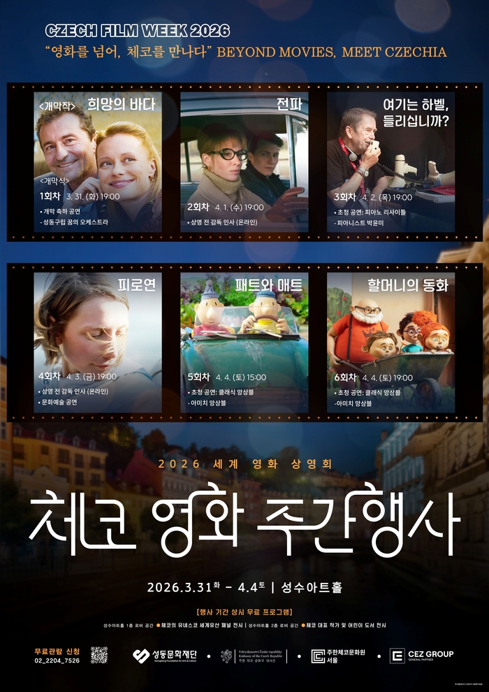 ‘영화를 넘어 체코를 만나다’를 주제로 기획한 이번 행사는 영화 상영을 넘어 음악 공연과 전시 프로그램을 결합해 체코 문화를 다층적으로 소개하는 데 초점을 맞췄다. 행사는 오는 4월 4일까지 5일간 이어지며 모든 영화는 무료로 관람할 수 있다.