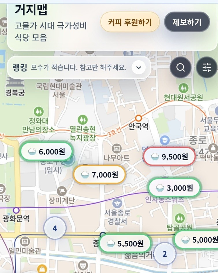 실제 거지맵 커뮤니티에는 “회사 주변에 3,500원 자장면이 존재한다는 걸 지금 알았다. 거지들아 고맙다”,“동네에 이런 착한 가성비집이 있었다니 몰랐다. 다 저장했다” 등의 글이 올라왔다.