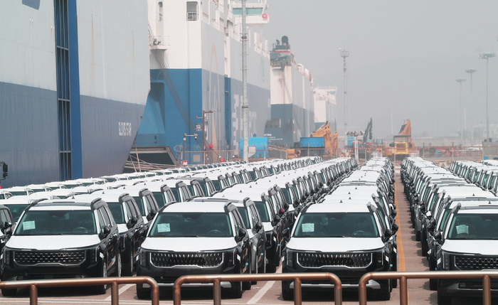 3일 경기도 평택항에 수출용 자동차가 세워져 있는 모습. [연합뉴스] 국제통화기금(IMF)은 중동 전쟁과 별개로 한국 재정 지표가 애초 예상보다 더 어두워질 것으로 분석한 바 있다. IMF는 지난해 10월 공개한 재정 점검 보고서에서 한국의 일반정부부채(D2)가 2030년이면 GDP의 64.3%가 될 것이라고 전망했다. 4월 보고서에서는 59.2%로 전망했다가 6개월 만에 5.1%p를 올린 것이다. D2는 D1에 중앙·지방 비영리공공기관 부채를 더해 산출한다.