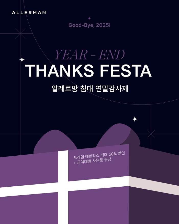 침구 브랜드 알레르망은 ‘알레르망 침대 연말감사제’를 전국 알레르망 침대 매장에서 오는 12월 31일까지 실시한다고 2일 밝혔다. 매트리스와 프레임 전 품목을 대상으로 최대 50% 할인 혜택이 제공된다. 특히 대표 라인인 ‘1840 매트리스’는 50% 할인, 그 외 전 품목 매트리스는 30% 할인된다. 프레임도 할인한다. 쥬아나·벤자민·데이지·해럴드 등은
