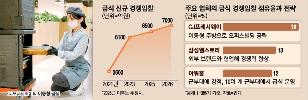 스타트업 밀집한 오피스등과중기·군대서 급식 수요 성장신규 입찰 5년새 2배로 증가주방 마련 어려운 시설 위해이동형 주방 서비스 등 도입CJ프레시웨이 올해 수주 1위