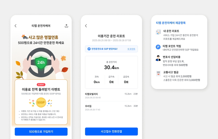 운전 리포트·포인트 적립·벌금 지원 혜택 500원으로 서비스 가입 시 전액 포인트 적립