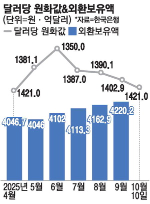 원화값 달러당 1421원외환보유액 4개월 연속 증가국제 권고엔 여전히 못미쳐