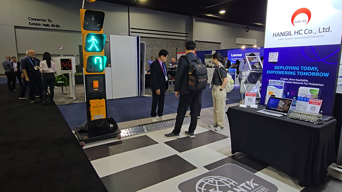 ㈜한길에이치씨(HANGIL HC Co.,Ltd.)는 지난달 8월 24일부터 28일까지 미국 조지아주 애틀랜타에서 열린 제31회 ITS(지능형교통체계) 세계총회에 한국관 기업으로 참가해 차세대 ‘첨단 스마트 횡단보도 솔루션’을 선보였다. 이번 총회에는 전 세계 53개국 ITS 전문가와 도시·기업 관계자들이 참가해 교통 혁신 기술과 정책을 공유했다. ㈜한길에이