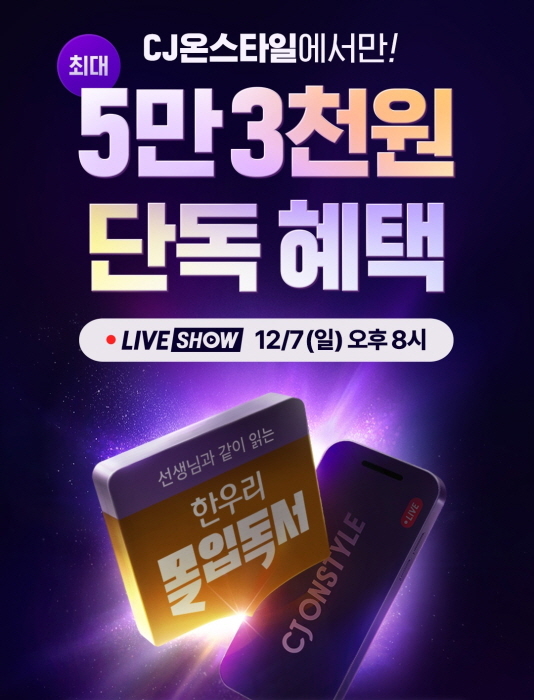 홈쇼핑 라이브 첫 론칭, 한우리 몰입독서 프로그램 상세 안내 방송 중 상담 예약, 기간 내 신규 회원 등록 시 CJ 단독 혜택 제공